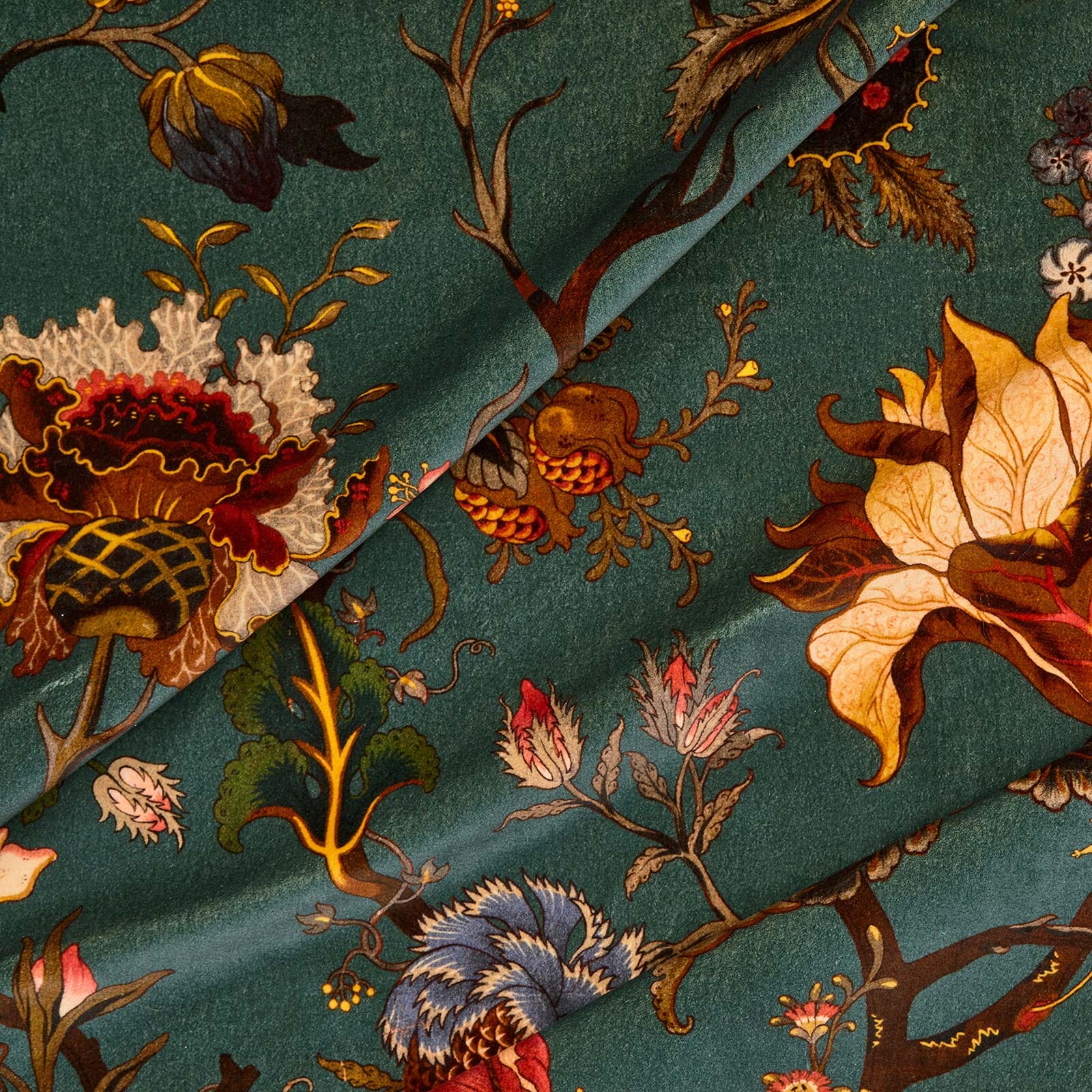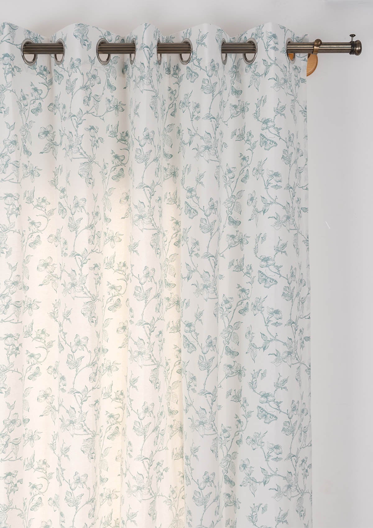 Flutter floral 100% cotton curtain for living room - Light Reduction - Nile Blue - Single Piece