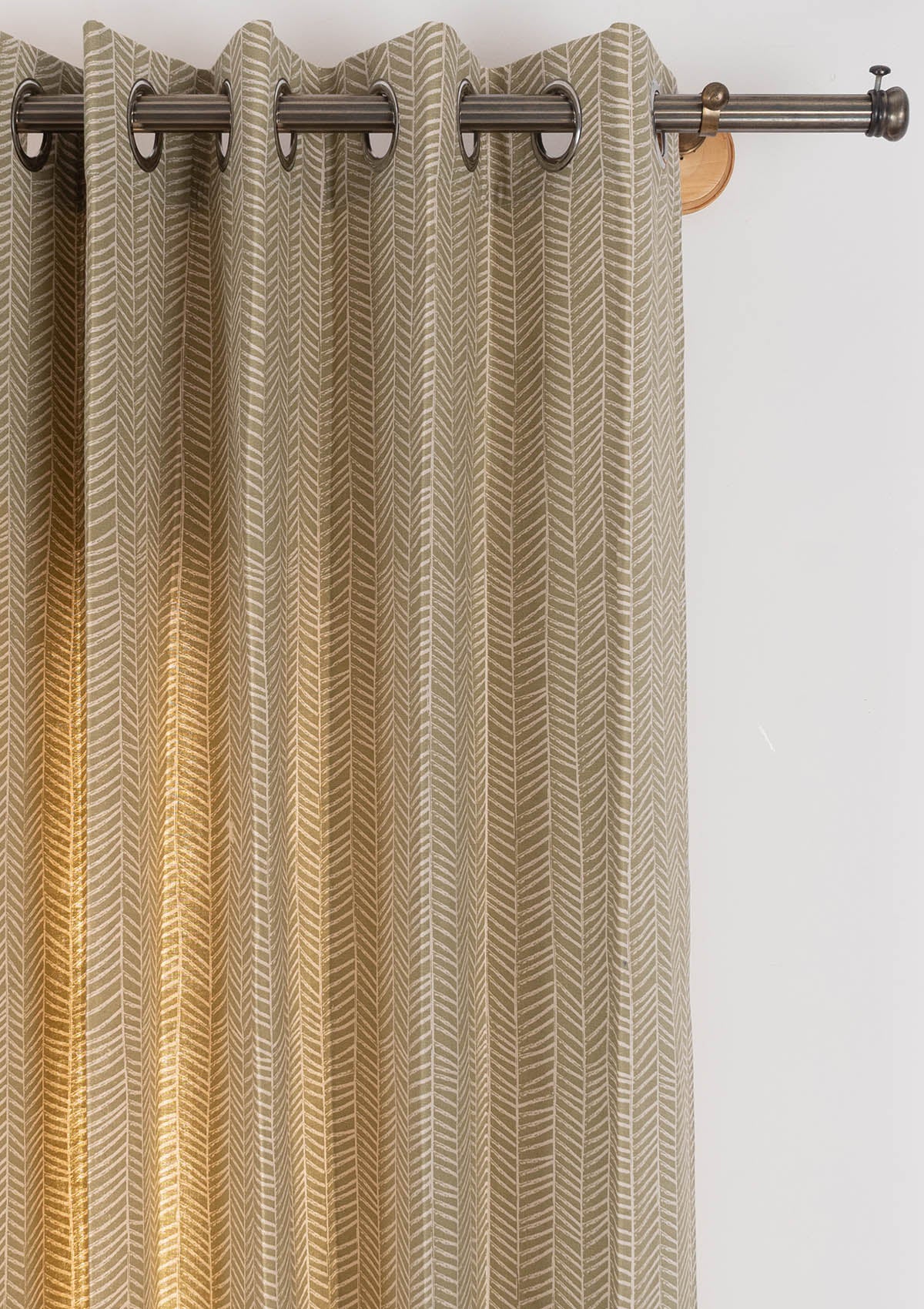 Rustle Herb Green Geometric Style 100% cotton curtain for Living Room and Bedroom - Room darkening - Single Piece