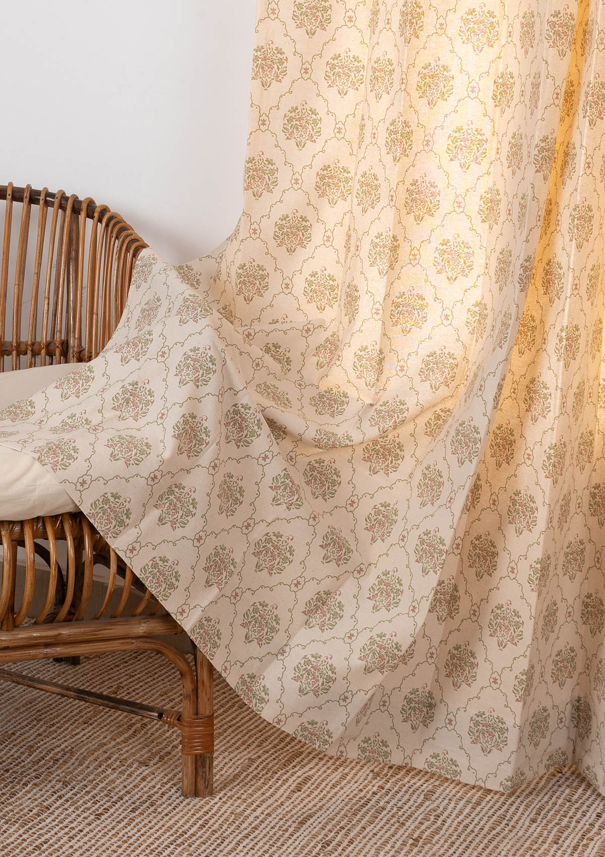 Fable modern floral-geometric 100% cotton curtain for Living Room and Bedroom - Room darkening - Multicolor - Single Piece