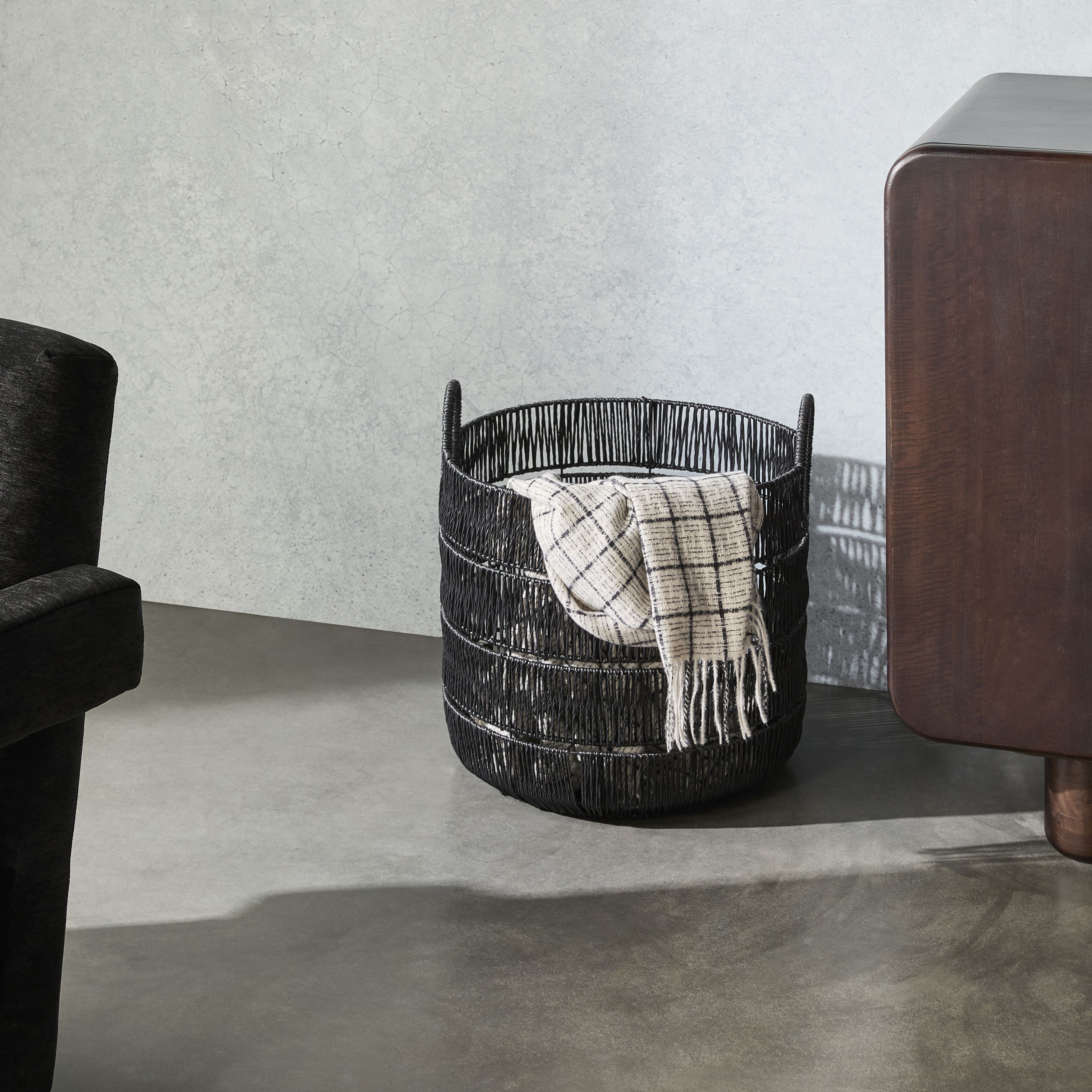 Bring a stylish and functional touch to your home with the Bristol Vertical Weave Large Basket. Crafted from durable poly rattan with a woven finish and sleek black colour, its vertical weave and round shape exude modern charm. The oval handles ensure a comfortable grip, making it easy to move around. Perfect for organising your space, showcasing a favourite faux plant, or as a decorative accent, this basket complements any décor effortlessly.