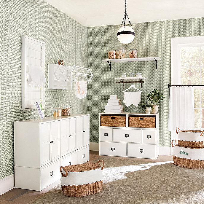 Designed to fit our Abbeville Stacking Cabinets, these versatile baskets are the perfect fit anywhere you need to get organized. Hand woven in a chunky weave of natural water hyacinth over sturdy iron wire frames.
