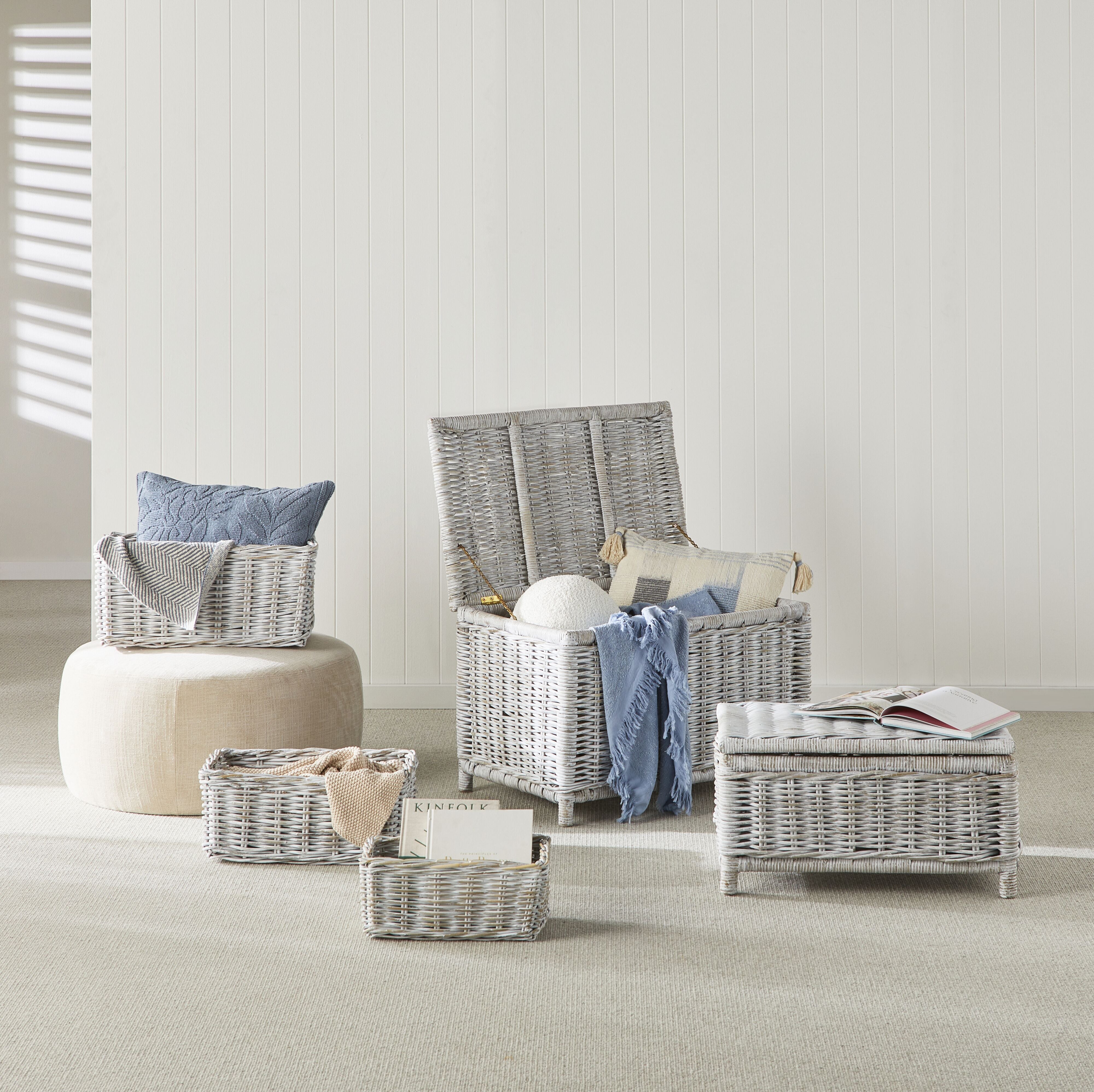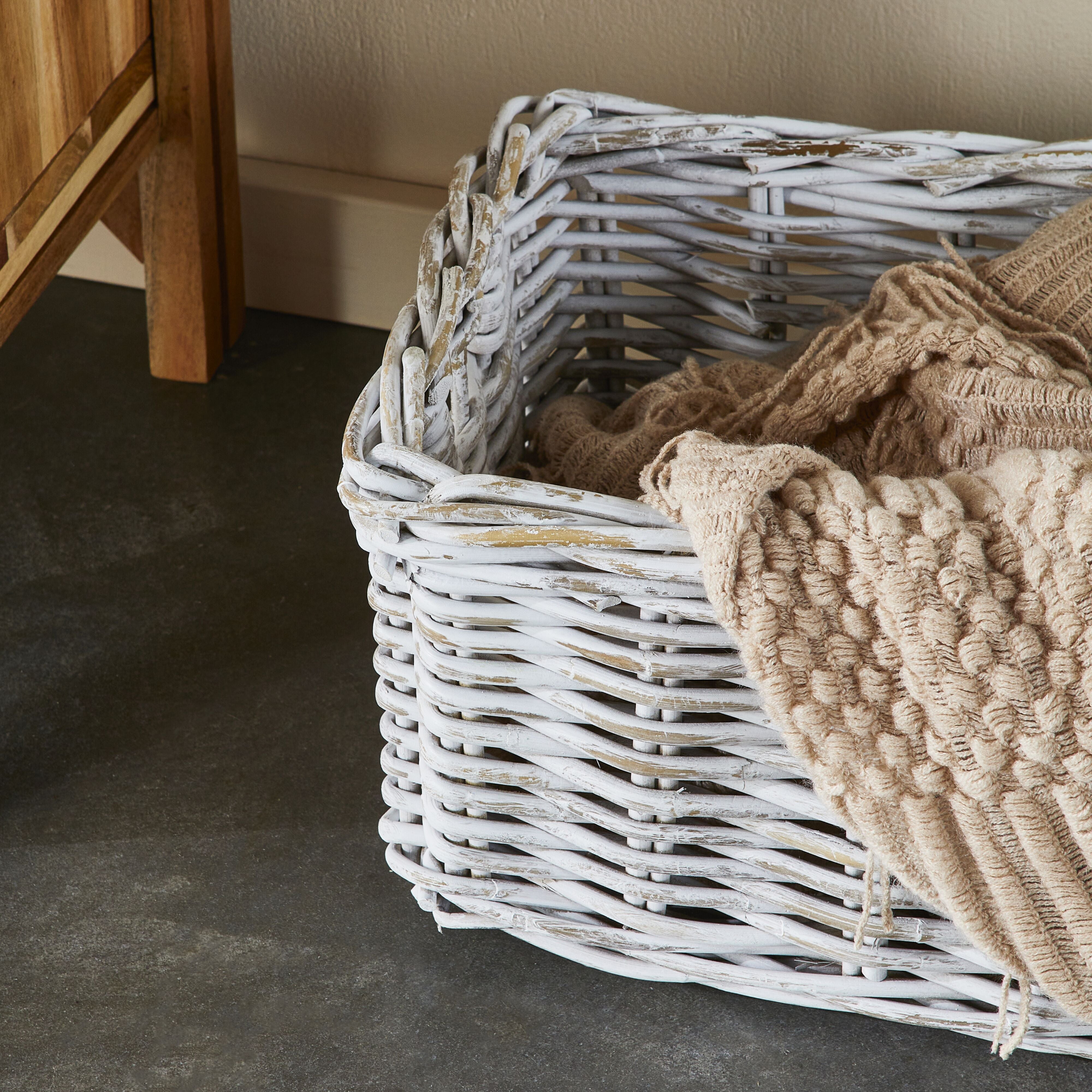 Effortlessly tidy up your home with the Lorne Basket in Medium White Wash. Perfectly sized for stashing away toys, blankets, or other essentials, its handwoven Kubu Rattan and coastal-inspired white wash finish make it as beautiful as it is functional. This basket is an easy way to declutter while adding a touch of natural texture to any room.