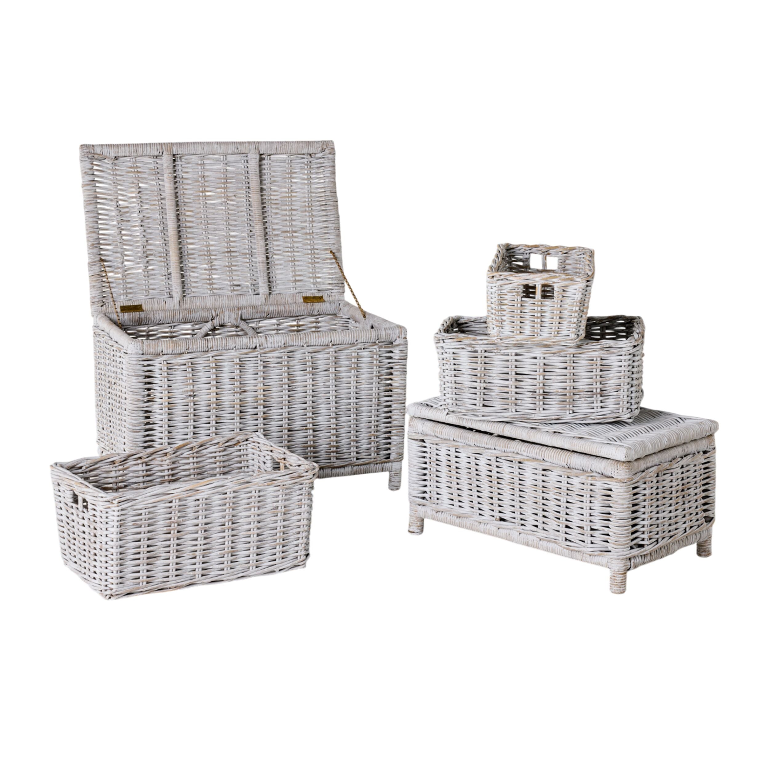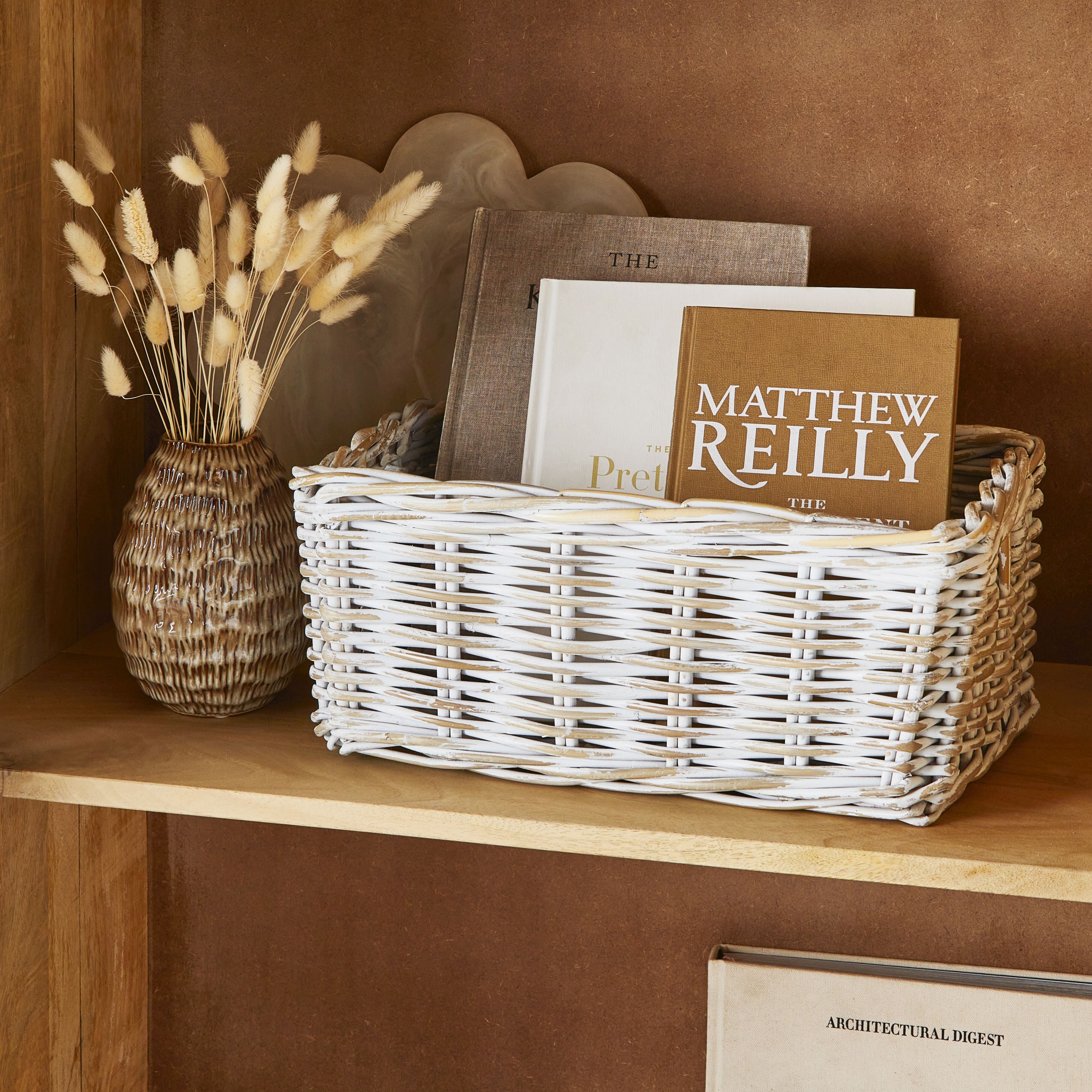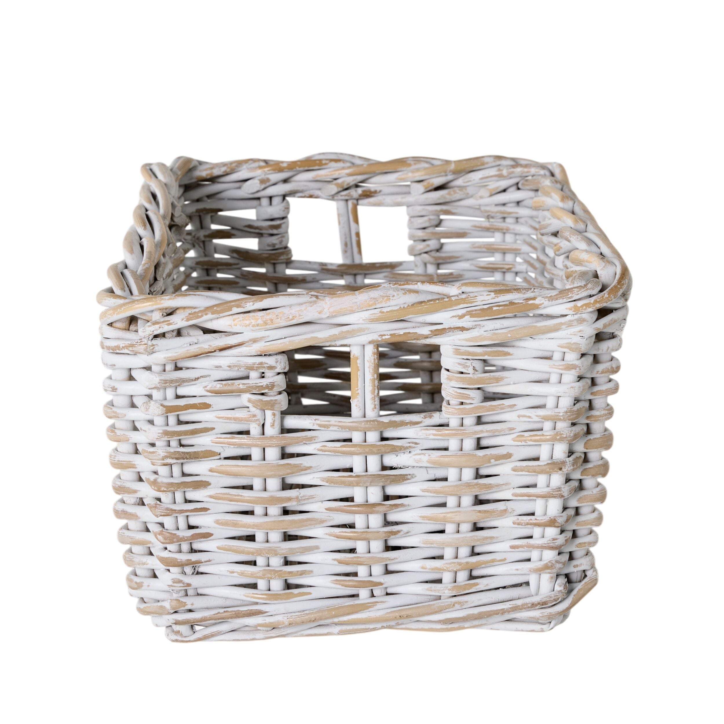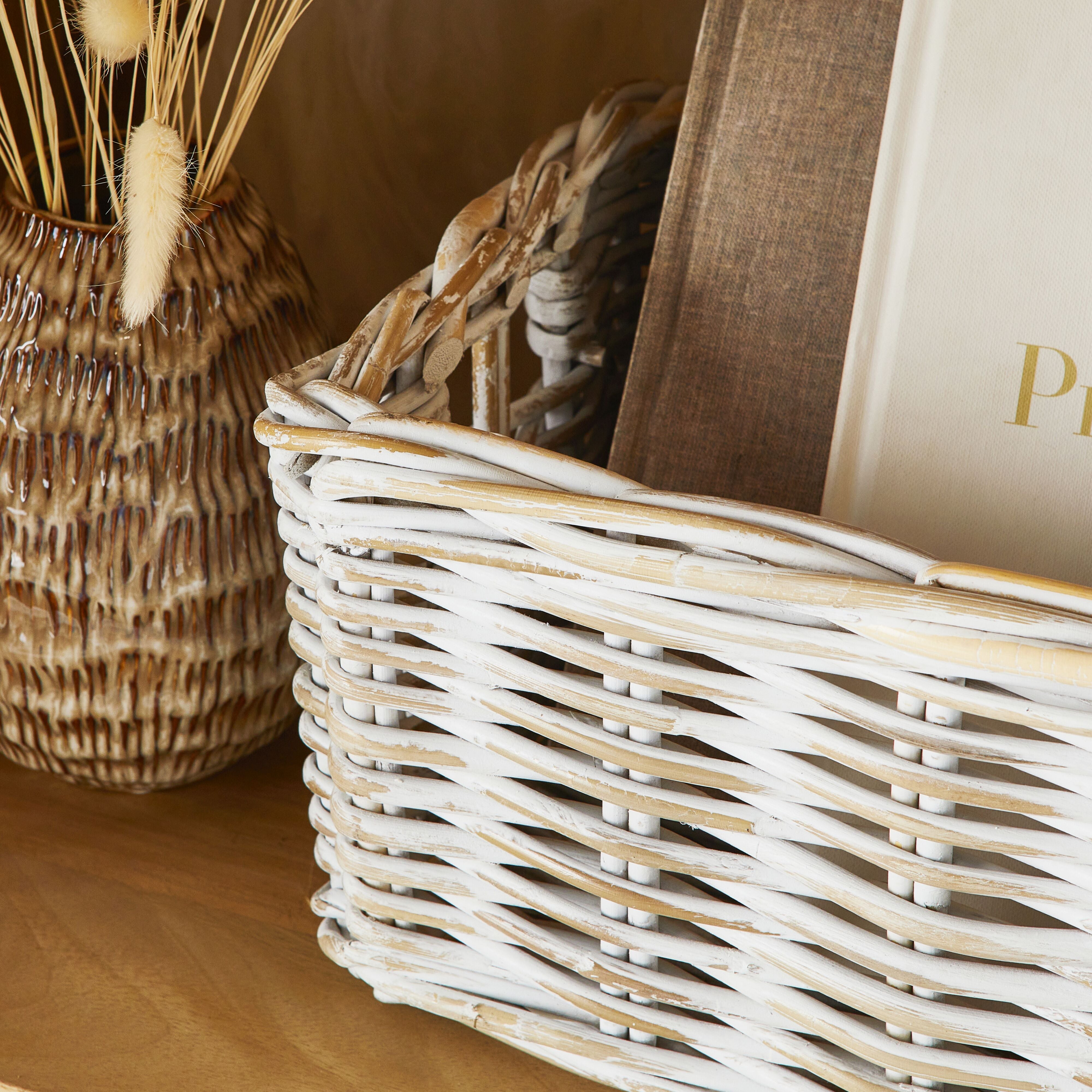 Organise and declutter your home with the Lorne Basket in Small White Wash. Crafted from handwoven Kubu Rattan, this basket brings a touch of coastal charm to any space. Its classic design and white wash finish make it a stylish and functional addition to any room, perfect for storing everything from toys to magazines and books.