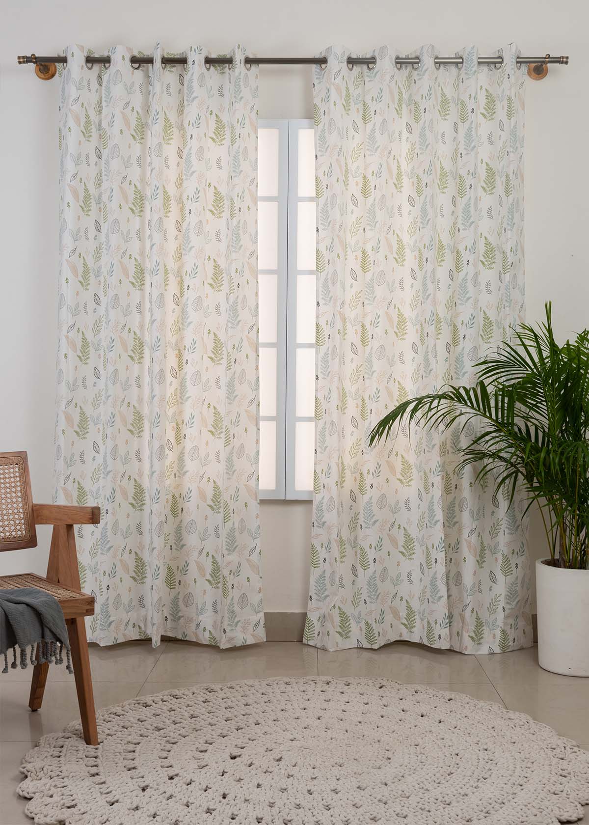 Rustling Leaves 100% cotton floral curtain for bed room - Light Reduction - Green - Single Piece